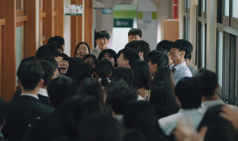 그는 다른 학생들의 환호까지 받는다.